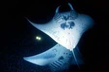 Those paint-brushed strokes of color above us are smearing into each other, making that canvas above us black with punctuation marks of stars and a blotch of moon. The waters are getting colder. They spread a heavy cover, and everything underneath becomes suddenly mysterious. The crew is shining lights to attract sea plankton, inviting manta rays to their big feast. (The mantas love the sea plankton, which they feed upon practically 24/7. Mantas are called filtered fish (not gefilte fish) because they scoop up water and filter out all the plankton.