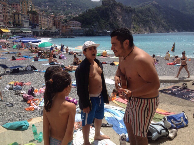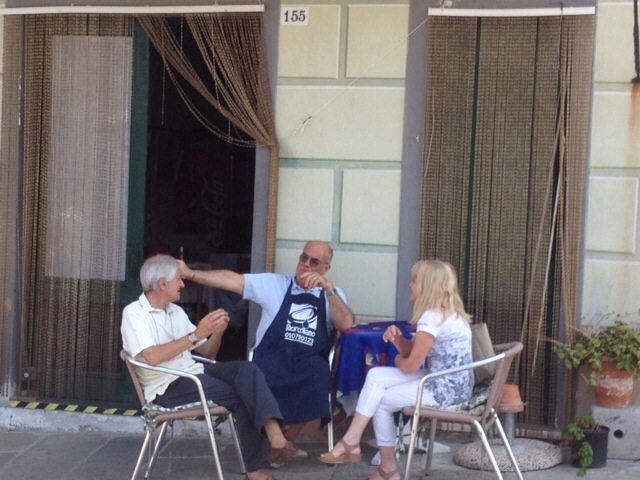Three from Italy as we pack for Nice Jul1 Gestures Joel reading Italian financials Entertainment on beach Related