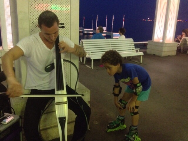 We listened to this talented cellist perform for almost an hour on the boulevard that borders the very long beach. This boy was as intrigued as we were with the cello that had only a frame that held the strings.