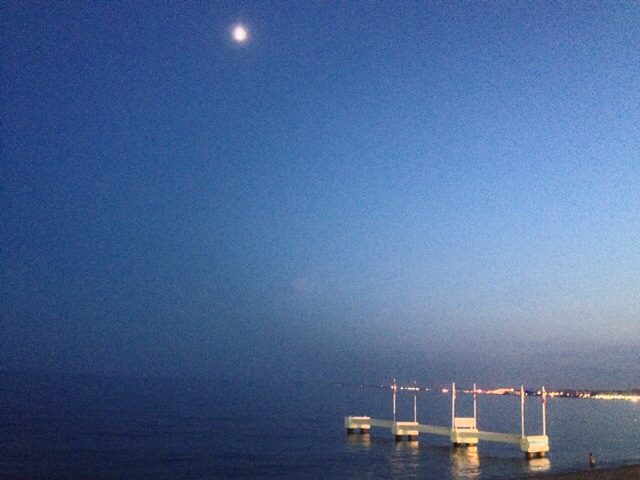 A view of the ocean and moon at dusk. The temperature is in the 70’s-80’s all day and all night.