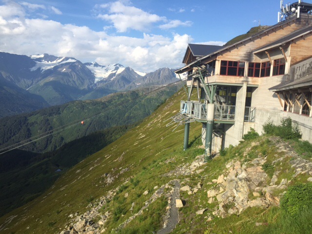 Alyeska Resort became a three day resting place between the two days of glacier-viewing.  What a perfect oasis, offering a tram ride that brings back to mind our experiences in Switzerland. The forests, flowers and lush landscape that lined the grounds brought back visions of New Zealand. Hiking trails leading to blueberries, ripe for picking, brought back memories of my Grandmother’s back yard when currants and raspberries went from plentiful vines directly into my 3-year-old mouth.