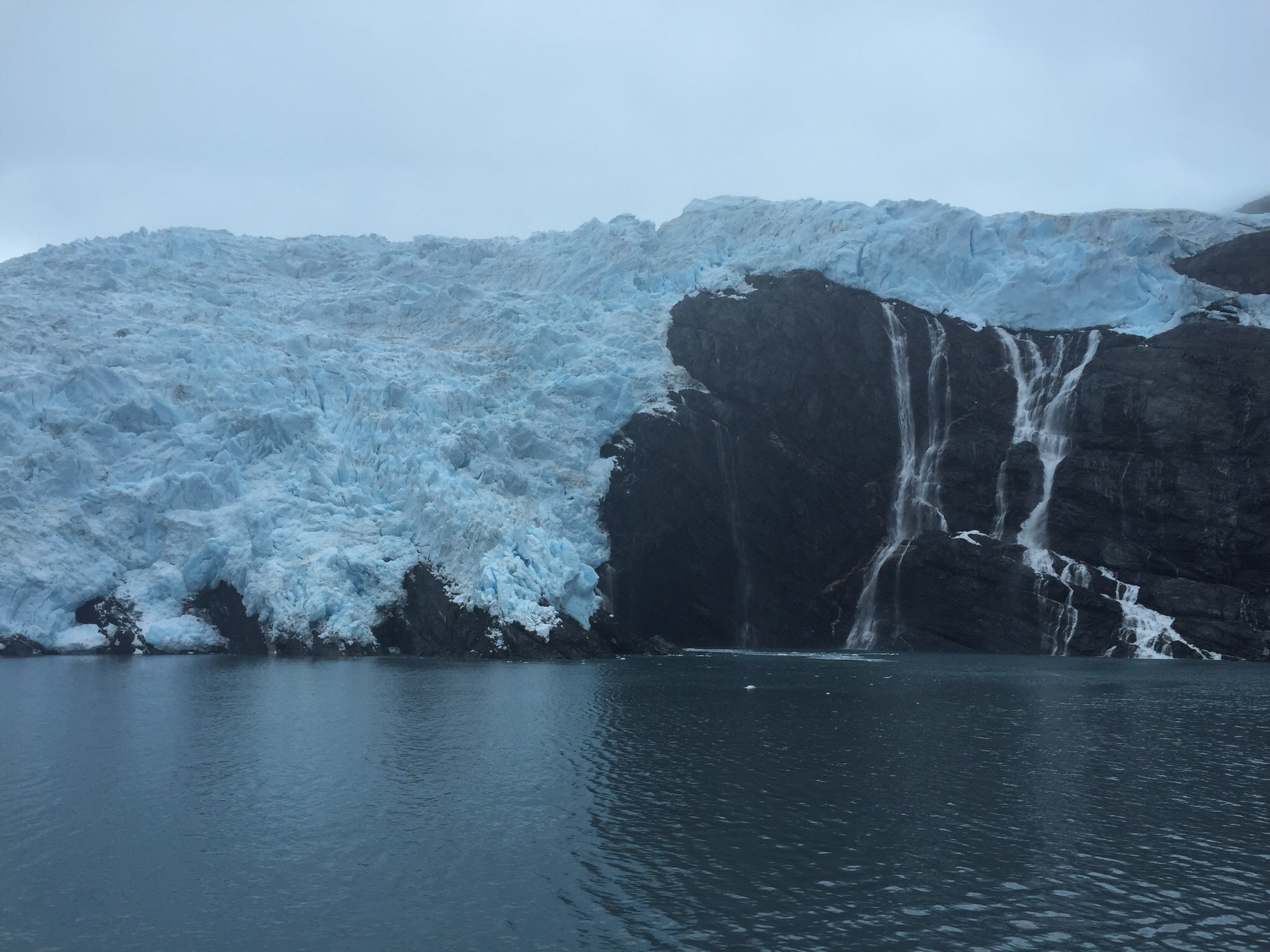 The next day, we were on our way to the Alyeska Resort, from where we drove to take another vessel to view a glacier that stands 700 feet high and has a nearby waterfall that shoots water a distance of 35 feet. We were so close to the Blackstone and Beloit Glaciers that we could hear them calve (drop massive chunks of glacial ice into the water).